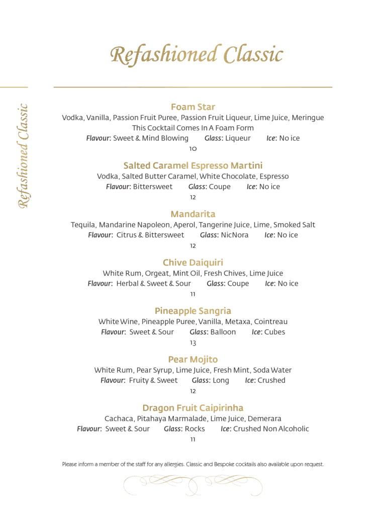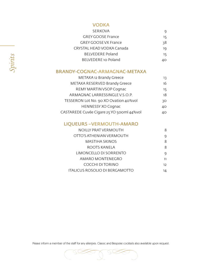 Με signature cocktails, premium αποστάγματα και μια φιλοσοφία που σέβεται την τέχνη του ποτού, δημιουργούμε το ιδανικό σκηνικό για χαλάρωση, κοινωνικότητα ή ένα κομψό aperitif πριν το δείπνο.